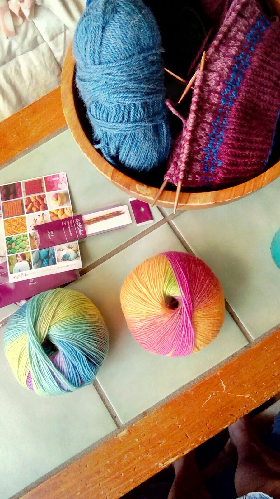 I am so pleased with my yarn!!!!! A birthday present from money from my Dad. Chroma Fingering Yarn in "Groovy" (the light yellow, orange and pink) and Pegasus (the blue, yellow and green and purple). It's soft and so very pretty. I think it looks just like sherbet! It'll be so fun to work on the Summer 2016 KAL. It started July 15th and we just had the second clue on Friday. Will I catch up? I don't know.